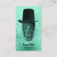 Ce crâne gothique victorien avec chapeau haut de Tattoo Shop cartes de visite professionnels dispose d'un gris antique vintage vert pastel vert de tonte goth. Impressionnez vos clients avec ce cool unique Halloween design de texture inspirée harlequin motif arrière - plan. Copyright de l'image Marg Seregelyi Photography.
