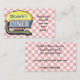 Créez votre propre personnage, style 1950 dîners signent carte de visite en utilisant ce modèle facile. Ce design rétro cool a un arrière - plan à damiers rose et blanc légèrement en détresse avec une enseigne qui dit "DINER" et "OUVERT" en néon avec espace pour vous d'ajouter votre propre nom de diner. Ajoutez votre slogan ou un autre texte - et ajoutez plus de détails d'affaires à l'arrière. Les cartes de visite se déclinent dans les tons rose, blanc, noir, bleu, jaune, gris et rouge. Il vous suffit de remplir le modèle do-it-yourself ou "Customiser" si vous avez besoin de redimensionner, réorganiser ou modifier les couleurs et les polices du texte.