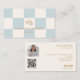 Rehaussez l'image de votre boulangerie avec notre carte de visite de boulangerie à carreaux bleus et ivoire. Une carte de visite photo parfaite pour les cafés, les boulangeries, les pâtisseries ou les micro-marques de boulangerie, cette carte de visite de boulangerie bleu pastel clair et crème est un must pour créer une impression durable. La carte présente un motif à carreaux bleu pâle et blanc cassé avec un texte doré. Le verso présente vos coordonnées de boulangerie, votre photo et un code QR personnalisé. Si vous apportez votre propre logo, vous pouvez modifier le logo du croissant en votre propre logo en quelques secondes et mettre à jour tout le texte avant de passer votre commande. Faites une déclaration à chaque interaction et laissez votre carte de visite parler de l'engagement de votre boulangerie envers la qualité et le style. Mettez à jour votre emballage commercial avec