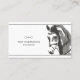 Ce carte de visite à thème équestre présente un croquis à cheval dessiné à la main et un petit morceau en gris. -