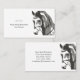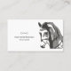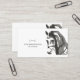 Ce carte de visite à thème équestre présente un croquis à cheval dessiné à la main et un petit morceau de gaufre dans les tons gris. ^