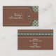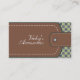 Modèle de carte de visite en cuir Brown et vert et accessoires motif avec deux bandes marron avec coutures et un bouton en cuir - pas en cuir réel juste une image IMPRIMÉE et motif géométrique en gris et vert clair.