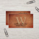 Carte De Visite Cuir brun clair rustique monogramme écriture noire