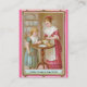 Les montres d'une fille en tant que sa mère ouvre un sac de farine dans une cuvette ainsi elle peut commencer sa cuisson dans une carte victorienne du 19ème siècle d'album.