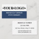 This stylish dark blue business card is easily customizable with your logo, name, and details.