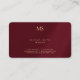 Custom Gold Text Elegant Modern Professional Monogram Template Bordeaux Standard Size Premium Silk Paper Luxurious Business Cards. Perfect for Real Estate Agents, Accountants, Realtors, Brokers, Attorneys, Lawyers, Corporate Professionals, Stylists, Architects, Engineers, Directors, Managers, Consultants, Designers, Teachers, Musicians, all professions.