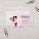Elevate your cleaning business’s first impression with this adorable yet professional maid-themed business card, perfectly suited for house cleaning professionals, residential maids, and deep cleaning specialists. Featuring elegant pastel purple sparkle faux glitter detailing, this eye-catching design brings warmth and trust to your brand while communicating expertise and care. The whimsical illustration of a cartoon cleaning maid clipart holding essential tools like a feather duster and spray bottle evokes a sense of dedication, reliability, and thorough cleaning service.