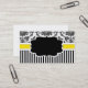 Carte de visite élégamment présenté ayant un arrière - plan damassé noir et blanc avec une bande jaune. Un étiquette au centre est disponible pour le texte.