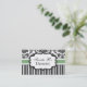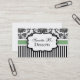 Carte de visite élégamment présenté ayant un arrière - plan damassé noir et blanc avec une bande verte. Un étiquette au centre est disponible pour le texte.