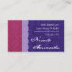 Ce carte de visite pourpre de conception de damassé avec sa signature fleurie est un joli choix pour votre carte de visite personnel. Bout de conception : Si vous avez un long nom, vous pourriez devoir remettre à la côte votre texte.