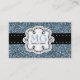 Un arrière - plan modelé par sembler mignon de parties scintillantes de faux aux nuances des bruits de bleu vraiment, pour très une capture d'oeil personnalisée m'appellent télécarte ou pour adapter à n'importe quelles affaires. Une rayure noire de ruban de bord pointillée par polka et un secteur girly tourbillonnant bouclé d'étiquette avec des courbes et des points savoureux pour vos initiales et nom dans le bleu coordonné et le noir. Le verso a trois gisements customizeable des textes pour votre information de contact.