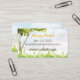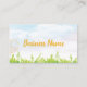 Un carte de visite parfait pour les amoureux de la nature avec des pissenlits soufflant dans le ciel, au milieu de l'herbe et des arbres.