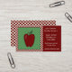 Ce carte de visite est parfait pour n'importe quel professeur. Il comporte une pomme rouge de l'aile gauche sur un arrière - plan vert entourée par une frontière blanche et par rouge vérifiée. L'information de professeurs est du côté droit avec un arrière - plan rouge.