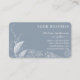 Botanique Vintage sur un carte de visite arrière - plan bleu Dusty. Le design comporte une illustration botanique antique et avec la belle police blanche et le choix de scripts fait de cette carte une belle carte féminine. Les champs de texte modèles sont préconçus pour vous permettre de personnaliser facilement. Le dos de la carte aura votre nom et est prêt pour une ligne de balise ou une devise. Carte de visite classique et élégante.