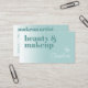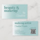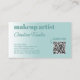 Carte de visite d'artiste en maquillage artistique de style minimaliste élégant et beau. Carte de visite contemporaine de couleur bleu océan léger avec une police moderne rétro et minimaliste vert sarcelle et blanche sophistiquée et classe. Cliquez sur 'Personnaliser' pour trouver le modèle prêt à être personnalisé avec votre nom d'entreprise unique, votre profession et vos coordonnées, votre texte et votre code QR de choix. Ce design particulièrement joli et unique a été créé pour ceux qui aiment les designs classiques sophistiqués et robustes.