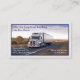 Un dessin carte de visite montrant une illustration pittoresque d'un semi-camion à 18 roues et d'une remorque qui empruntent une route. Cela peut être utilisé pour une compagnie de camionnage et des services de transport. Peut également être utilisé par des camionneurs indépendants qui offrent leurs services.