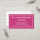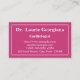 Moderne, propre et basique, ce design carte de visite est doté d'un arrière - plan magenta et d'une bordure blanche à deux lignes. Il pourrait être utilisé par un professionnel comme un cardiologue, un chirurgien, un chirurgien orthopédique ou un médecin. Le nom, la profession et les coordonnées peuvent être personnalisés.
