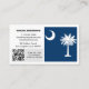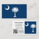 Cartes de visite : carte de visite moderne de Caroline du Sud avec drapeau de Caroline du Sud d'un côté et vos détails avec scannable QR Code, petit drapeau de Caroline du Sud de l'autre côté. Customisez facilement le lien dans le code QR pour votre site Web ou numéro de mobile, personnalisez le nom, les coordonnées ou changez de drapeau sur le côté pour le logo de votre entreprise, la photo personnelle ou toute autre image. Faites-le votre entreprise ou simplement carte pour déménager la maison.