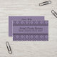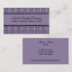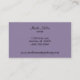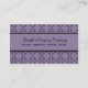 Sweet and dainty Country Charm design Carte de visite en violet lilas avec un motif motif arrière - plan. Cette carte de visite rustique mais élégante est parfaite pour une variété de champs différents. Facile à customiser, il suffit d'ajouter vos détails d'affaires dans les champs fournis. Cliquez sur le bouton "Customiser" pour trouver d'autres options de personnalisation.