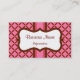 Un motif rose framboise et marron chocolat orne ce carte de visite professionnel. Customisez les informations sur ce carte de visite pour répondre à vos besoins, ajouter ou supprimer des informations, changer le style de police, la taille de police, etc...Le design est de l'art original. Utilisez ce carte de visite élégant pour un spa, salon, petite entreprise, décoration maison, design d'intérieur, bed and breakfast, auberge, café, planificateur d'événements, bed and breakfast, boutique, boulangerie, coffee shop. chocolats, bonbons, garderie, garderie, garderie, garderie, garderie, garderie, garderie, garderie, garderie, garderie cuisine, cosmétologue, etc...