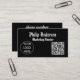Ce carte de visite noir élégant allie design moderne et fonctionnalité professionnelle. L'avant présente une mise en page épurée et minimaliste, présentant votre nom et votre titre en texte blanc immaculé pour une lisibilité maximale. Un logo est affiché en évidence au-dessus ou à côté du texte, renforçant votre identité de marque, tandis qu'un code QR ajoute une touche de technicité, offrant un accès instantané à votre site Web, votre portefeuille ou vos coordonnées. Le dos de la carte est organisé efficacement, présentant votre numéro de téléphone, votre adresse e-mail, votre adresse physique et votre site Web dans un format clair et structuré. Le contraste du texte blanc par rapport à l'arrière - plan noir garantit que tous les détails sont faciles à lire en un coup d'oeil. Avec sa finition noire mate et son élégant texte blanc, ce carte de visite exhale sophistication et professionnalisme. Les améliorations optionnelles, telles que les logos en relief ou les codes QR lustrés, peuvent accroître encore son attrait visuel, ce qui en fait un choix exceptionnel pour toute industrie.