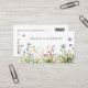 Carte de visite de pré fleur sauvage Aquarelle feminine et blanche propre. L'avant a la conception d'une prairie et de papillons fleur sauvage avec le nom de propriétaire. L'arrière-plan a tout l'essentiel d'un carte de visite; nom, titre/nom de l'entreprise, adresse, téléphone de travail, e-mail, mobile et adresse web. Le code QR de l'entreprise est en haut à droite pour un accès facile à votre adresse web suivi d'un doux design d'un petit bouquet fleur sauvage et d'une libellule. Ce design fleur sauvage d'aquarelle est offert sur différents produits, parfait pour vous qui avez besoin d'autres fournitures et qui voulez une conception cohésive sur vos produits promotionnels. Mélanger et faire correspondre. Il est impressionnant et donne une touche féminine à votre entreprise.