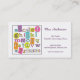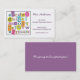 Grand carte de visite pour toute professeur, tuteur, fournisseur de garde, babysitter ou professionnel élémentaire ou préscolaire de soins des enfants. L'illustration originale de l'alphabet et des nombres fait une déclaration merveilleuse aux nuances d'amusement de la sarcelle d'hiver, de l'orange, du vert de chaux, du rose, de l'orange et du pourpre. Customisez le texte sur l'avant et de nouveau au costume vos besoins.