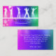 Cartes de visite colorés faits sur commande parfaits pour DJs, musiciens, et clubs. Avec un arrière - plan de gradient dans rose, pourpre, bleu, et vert, les silhouettes blanches des danseurs se tiennent bien. Customisez le texte sur l'avant et de nouveau au costume vos besoins. Changez le style de police, le colorez, et les tailles, ajoutent même plus de texte si vous voulez.