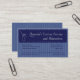 Carte de visite pour le tailleur, l'ouvrière couturière, le concepteur, ou n'importe qui dans les affaires de couture. Cardez les caractéristiques une aiguille et filetez sur un échantillon dentelé de bleu marine avec piquer arrosé. Le texte témoin est une suggestion de disposition. Complètement personnalisable, l'alignement des textes peut être changé, clic "personnaliser il" ou "personnalisez" pour voir vos options de couleur des textes, de police, de taille, et de style, ajoutez ou supprimez le texte, l'alignement des textes, et les tailles de carte. Vous pouvez ajouter plus de texte sur le dos de la carte ou supprimer le gisement des textes pour laisser le blanc.