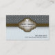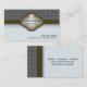 Conceptions de ©2011 Pam. Représentez votre art dentaire de famille ou pratique en matière d'orthodontiste avec ce carte de visite chic et professionnel, dentaire. Cette carte comporte une silhouette blanche de dent sur un joint brun et blanc âgé par cru avec un ruban strié. L'arrière - plan est composé d'un papier bleu vintage de points près d'un bleu-clair avec l'arrière - plan transparent de gradient de damassé.