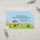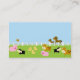 Jolie carte de visite de ferme d'animaux pour vos promenades à poney et votre entreprise de ferme d'animaux. La carte de visite de la ferme présente des vaches adorables, des moutons, des cochons, des poussins et des chevaux dans un pâturage vert avec une clôture blanche et un ciel bleu.