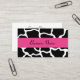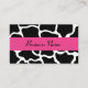Un imprimé en girafe noir et blanc, avec un accent rose vif, décore ce carte de visite personnalisé. Customisez ce carte de visite pour répondre à vos besoins. Le design est de l'art original. Utilisez ce carte de visite pour une boutique, boulangerie, mode, transformations, décoration, bijoux, accessoires, maquillage, organisateur d'événements, salon de ongles, salon de coiffure, coiffeur, immobilier, design d'intérieur, salon, spa, cosmétologiste, etc...