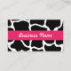 Un imprimé en girafe noir et blanc, avec un accent rose vif, décore ce carte de visite personnalisé. Customisez ce carte de visite pour répondre à vos besoins. Le design est de l'art original. Utilisez ce carte de visite pour une boutique, boulangerie, mode, transformations, décoration, bijoux, accessoires, maquillage, organisateur d'événements, salon de ongles, salon de coiffure, coiffeur, immobilier, design d'intérieur, salon, spa, cosmétologiste, etc...