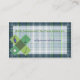 Carte de visite coloré de golf fait dans un plaid bleu et vert, avec le clipart (images graphiques) de golf dans le coin du fond gauche. Customisez l'avant et le dos de cette carte en changeant le texte, en couleurs, taille, style, ajoutent les zones de texte supplémentaires ou enlèvent des secteurs des textes. Ayez l'amusement personnaliser ce grand carte de visite de regard, pour lui faire vos propres. La version corrigée avec le contact numérote prêt à personnaliser, montré ci-dessous.