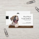 Distinguez votre chien naturel avec des cartes de visite uniques. Ces cartes de visite de photos de chien amusants sont sûrs d'attirer l'attention de votre entreprise gourmande de gâteaux pour chien. Personnalisez l'avant et l'arrière de votre entreprise de carte de visite avec vos coordonnées, y compris vos comptes de médias sociaux, votre site Web, votre adresse électronique et votre numéro de téléphone. Vous pouvez également ajouter votre texte personnalisé en indiquant à vos clients où se trouve votre boutique pop-up. Excellente façon de vendre vos gâteries pour chiens faites maison.