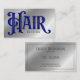 Cheveux par Carte de visite de typographie. Bleu sur Silver Steel le rendant rugueux et moderne. Les lettres de typographie sont en Bleu avec l'ombre d'acier argenté et en ligne avec un arrière - plan brillant en acier argenté faus L'arrière est a le même look d'acier avec votre texte personnalisé en gris datk. Customisez le texte correspondant à votre entreprise - vous pouvez ajouter le nom du salon et l'adresse de la rue si vous le souhaitez. Connectez-vous avec des amis et des clients sur instagram et facebook et présentez votre travail à la mode.