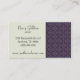 Sweet and joli Country Lines Carte de visite design en violet violet avec un décor arrière - plan motif à motif de pays décoré. Ce charmant carte de visite de style rustique conviendra parfaitement à une bijouterie ou une boutique ! Facile à customiser, il suffit d'ajouter vos informations commerciales dans les champs fournis. Cliquez sur le bouton "Customiser" pour trouver d'autres options de personnalisation.