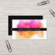 Les cartes de visite d'aquarelle chic arborent votre nom ou nom d'entreprise recouvert de blanc sur le noir, sur une illustration de l'encre blooming, dans des teintes lumineuses et colorées de coucher de soleil de rose fuchsia et de verge d'or. Ajoutez vos coordonnées complètes à l'arrière en blanc sur noir.
