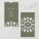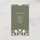 Carte de visite vertical en vert de mousse avec les silhouettes féminines réminiscentes des détails de lustre.