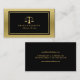 Le carte de visite très élégant de mandataire d'avocat avec l'arrière - plan d'or de Faux et la justice mesurent le symbole avec le cadre noir.