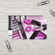Maquillage artiste design carte de visite avec rouge à lèvres rose, palettes d'ombre et vernis à ongles sur arrière - plan rose-blanc brillant recouvert de parties scintillant. Cette carte de profil élégante est parfaite pour les esthéticiennes, les cosmétologues, les salons de beauté pour cheveux et maquillage et autres professions similaires. Si vous avez besoin d'aide pour ce design, n'hésitez pas à me contacter.
