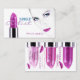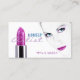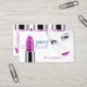 Maquillage artiste design carte de visite avec le visage de femme et rouge à lèvres violet brillant sur arrière - plan blanc. Cette carte de profil élégante est parfaite pour les esthéticiennes, les cosmétologues, les salons de beauté pour cheveux et maquillage et autres professions similaires. Si vous avez besoin d'aide pour ce design, n'hésitez pas à me contacter.