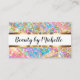 Maquillage élégant Modèle de carte de visite d'artiste dans un design totalement unique créé avec numériquement oeuvre imprimée qui imite l'aspect d'un hologramme de parties scintillant arrière - plan et d'art numérique de parties scintillant dans ce design élégant à deux côtés qui comprend deux côtés d'impression couleur complète.