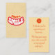 Un petit Carte de visite de Merci client avec un graphisme texte "Voici un sourire" sur le devant et le texte modifiable et votre logo sur le dos. Il est offert en différentes couleurs mais peut être customisé à n'importe quelle couleur. Cette carte de remerciements lumineuse et colorée peut être personnalisée dans le marketing de votre entreprise, que vous soyez une petite entreprise, designer, traiteur, boulanger ou vendeur d'essai.