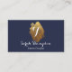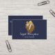 Carte de visite monogramme de marine et d'or, avec texte blanc.