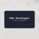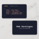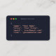Ce carte de visite moderne d'inspiration technologique dispose d'une esthétique de fichier JSON propre qui communique instantanément votre identité professionnelle en tant que développeur. La conception présente habilement vos coordonnées comme des paires clé-valeur - dont le nom, le titre, le courrier électronique et le site Web - à l'aide d'une police monoespacée qui imite les éditeurs de code pour un look programmeur authentique. Sous les données structurées, votre rôle en tant que "Senior Web Developer" s'affiche en évidence, créant un équilibre parfait entre la sophistication technique et une image de marque professionnelle claire. La mise en page minimaliste avec sa mise en forme de code fait de cette carte une référence lors d'événements de réseautage et de conférences technologiques, tout en mettant en valeur efficacement votre expertise technique. Idéal pour les développeurs web, les ingénieurs logiciels et les professionnels de la technologie, ce design peut être customisé avec différents modèles de couleurs (comme le mode foncé avec des couleurs d'accents) ou amélioré avec des éléments supplémentaires comme les codes QR pour l'intégration numérique
