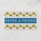Carte de visite de référence de salon. La conception a un motif et un modèle de couleurs géométriques modernes. Veuillez me contacter pour la demande de changement de couleur. Carte de visite fait sur commande de référence avec une promotion de référence pour récompenser vos clients pour se référer leurs amis. Grand pour lancer votre salon ou styliste et pour augmenter votre liste de client. Entrez dans votre propres promotion, dénis de responsabilité et information de l'entreprise. Perfectionnez pour un salon, un coiffeur, un styliste, un salon de beauté, un esthéticien, ou un salon de mani et de pédicurie.