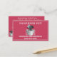 Très populaire chiot dans un design de seau. Faites remarquer votre entreprise avec ce carte de visite de toilettage couleur rose. Puppy a un arc bleu et des bulles dans son bain. Utilisez le modèle facile pour customiser tous les détails de votre entreprise. Mettez-les sur votre comptoir et regardez-les partir. Le moyen le plus économique de commercialiser votre entreprise.Utilisez l'arrière pour configurer la date de rendez-vous suivante.