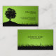 Modèle personnalisable de carte de visite comportant une silhouette de chêne et des champs d'herbe sur le vert et le noir.