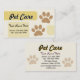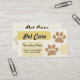 Une carte élégante pour ceux dans le domaine de soin des animaux familiers. Cette carte peut être personnalisée avec votre nom, le travail, société et l'information de contact utilisant "personnalisent" des champs. Ou vous pouvez utiliser le bouton de "personnaliser" au style de modifier-type, à l'emplacement, à la couleur, etc. Si vous AVEZ BESOIN DE L'AIDE ou voulez une conception modifiée envoyez svp votre demande en cliquant sur sur la ligne "envoyez message" à ma page principale et je vous arriverai de retour DÈS QUE POSSIBLE. (Conçu par JT le lendemain Copyright, 20010, JT le lendemain.)
